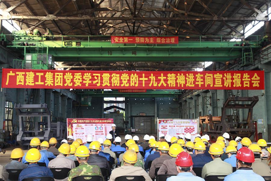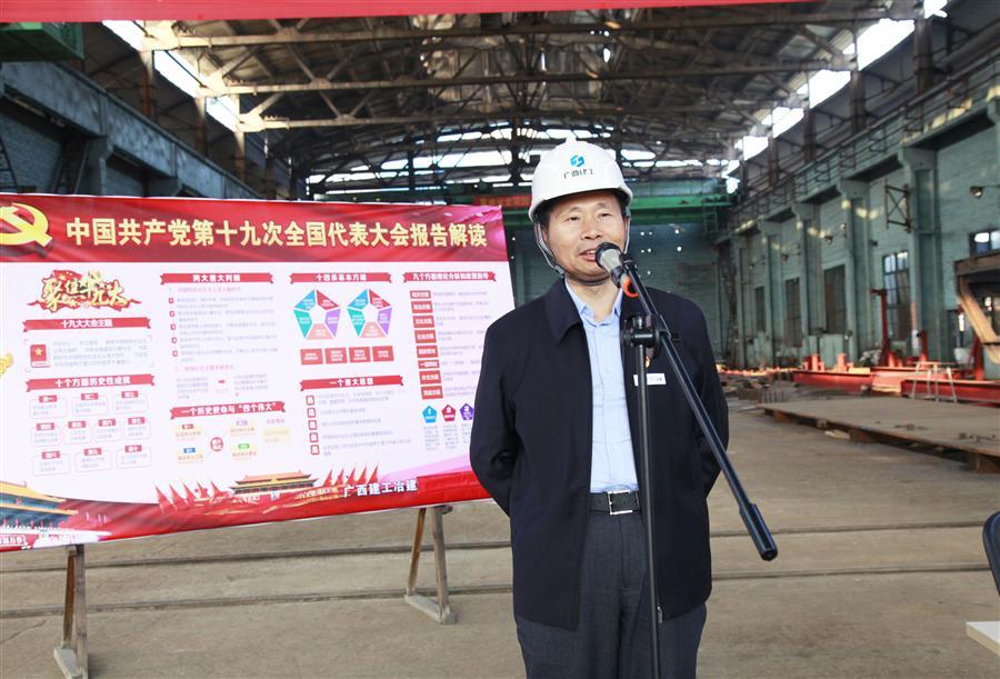 12月6日下午,廣西建工集團(tuán)黨委委員、副總經(jīng)理侯立林到冶建公司壓力容器制造廠鉚焊車間進(jìn)行學(xué)習(xí)貫徹黨的十九大精神進(jìn)工地、進(jìn)車間宣講報告。
