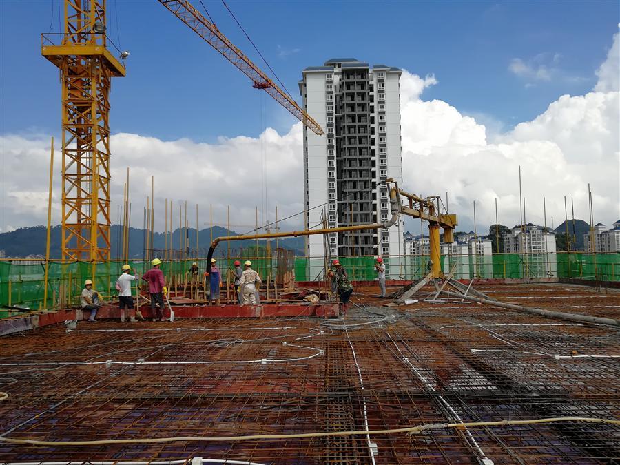 該工程于去年12月全面開工,經過參建人員9個月的共同努力,目前主樓主體結構實現封頂,項目將全面進入砌體施工階段。