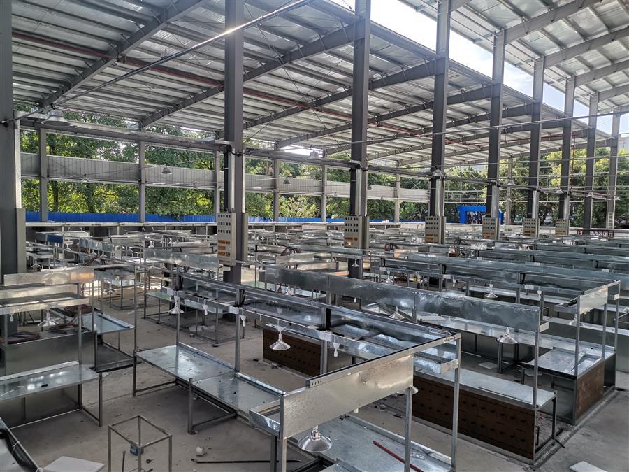 9月21日,在第十分公司承建的柳州市桂中商城改造過渡市場項目施工現(xiàn)場,100多名施工人員堅守崗位,趕工期,搶進度。目前,該項目道路已全部硬化,鋼結(jié)構安裝工程完成90%,門窗安裝完成60%,水電安裝完成90%。