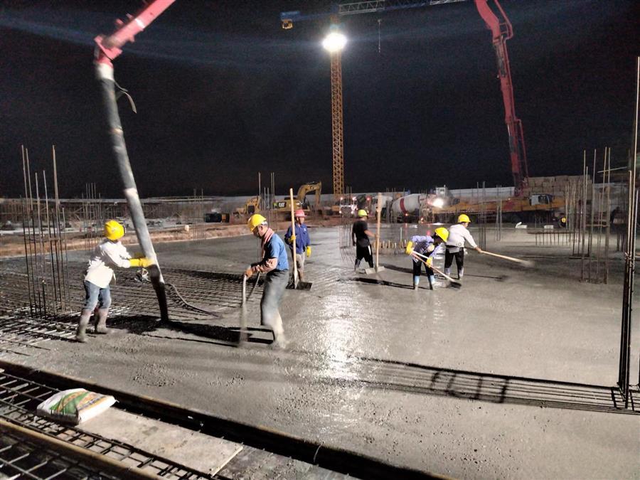 面對高溫酷暑,北岸苑項目部安排技術(shù)人員輪班到現(xiàn)場進行巡查、監(jiān)督、指導,認真做好防暑降溫、安全施工、后勤保障等工作,同時項目部還增加人力物力、加班加點搶抓施工進度。當前每天約有200人的鋼筋班組、木工班組和混凝土班組在現(xiàn)場有序進行安裝模板、搭設支架、綁扎鋼筋、推動混凝土等工作。截至目前,地塊一(1-6#)土方挖運完成90%;地塊二(7-14#)主樓樁基礎(chǔ)全部施工完成,地下室部分結(jié)構(gòu)施工完成50%。