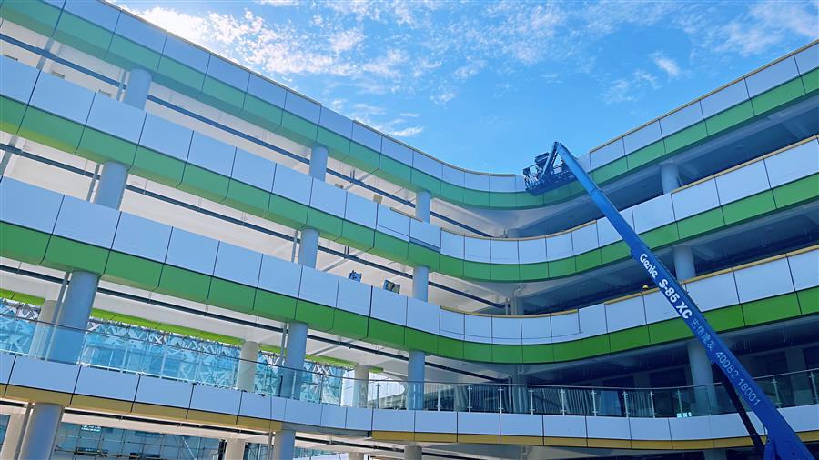 經(jīng)過(guò)兩個(gè)多月的奮戰(zhàn),項(xiàng)目已進(jìn)入施工收尾階段,并有望提前竣工。當(dāng)前,項(xiàng)目總進(jìn)度已完成90%以上,小學(xué)和初中部共4棟教學(xué)樓及行政樓內(nèi)裝、智能化設(shè)備安裝、電氣等已全部完成,行政樓一樓報(bào)告廳除地板正在安裝外,其他已基本完成,風(fēng)雨操場(chǎng)正在進(jìn)行外墻鋁隔板安裝,室外兩個(gè)運(yùn)動(dòng)場(chǎng)及校園內(nèi)場(chǎng)地鋪裝已基本完成。