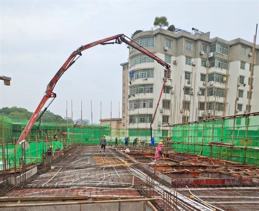 金山弄改造項目位于江西省鷹潭市月湖區(qū)勝利東路以北、林蔭東路以南,總建筑面積為1.5萬平方米,結構類型為框架結構,地上2-3層,地下1層,工期730日歷天。該項目的地質條件和周邊環(huán)境復雜,施工難度較大,且在今年9月份時,更是因疫情需要進行靜默管控的原因,暫停施工了大半個月。為確保按時達成工期目標,項目部積極與業(yè)主、監(jiān)理等單位溝通協(xié)調建設過程的難點、堵點,完善優(yōu)化施工方案,科學調配施工現(xiàn)場的人員、機械和材料,細分時間節(jié)點,實時管控施工過程,以決戰(zhàn)決勝的勁頭推進項目建設。