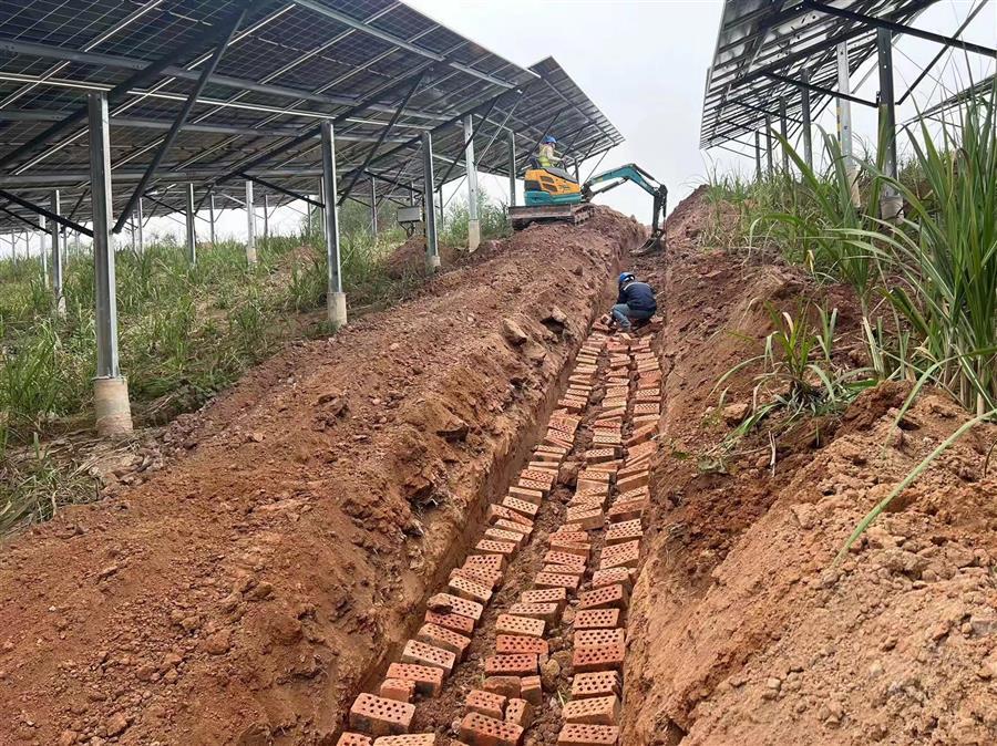 項目規(guī)劃總占地面積1509.9畝,建設(shè)規(guī)模為50MW,該項目的建成將有效助力當?shù)禺a(chǎn)業(yè)結(jié)構(gòu)優(yōu)化、節(jié)能減排,促進綠色可持續(xù)發(fā)展。項目已實現(xiàn)節(jié)點并網(wǎng),現(xiàn)階段主要圍繞電纜敷設(shè)、溝槽開挖、接地網(wǎng)敷設(shè)、圍欄安裝開展工作。當前,項目支架安裝完成66.32%,組件安裝完成66.32%,累計完成產(chǎn)值2270萬元。