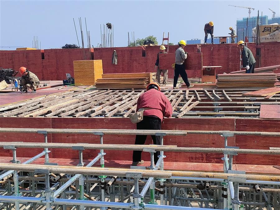 目前,該項(xiàng)目地下室三區(qū)滿堂架搭設(shè)完成,正在進(jìn)行剪力墻、頂板模板安裝、鋼筋綁扎施工;地下室五區(qū)、六區(qū)鋼筋綁扎完成,底板澆筑完成;地下室十一區(qū)磚胎模砌筑中;地下室二區(qū)正在鋪設(shè)防水卷材,累計(jì)完成產(chǎn)值3320萬(wàn)元。