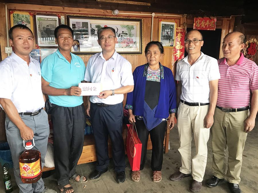 打贏脫貧攻堅戰(zhàn),冶建公司一直在路上。在中秋、國慶來臨之際,一公司三江縣洋溪玉民村烏杠屯易地扶貧搬遷工程項目部依然奮起趕工,項目各項工作穩(wěn)步推進(jìn)中。9月19日,一公司經(jīng)理黎建平率領(lǐng)烏杠屯易地扶貧搬遷工程項目部的黨員干部帶上糧油、慰問金等前往烏杠屯開展“雙節(jié)”慰問活動。
