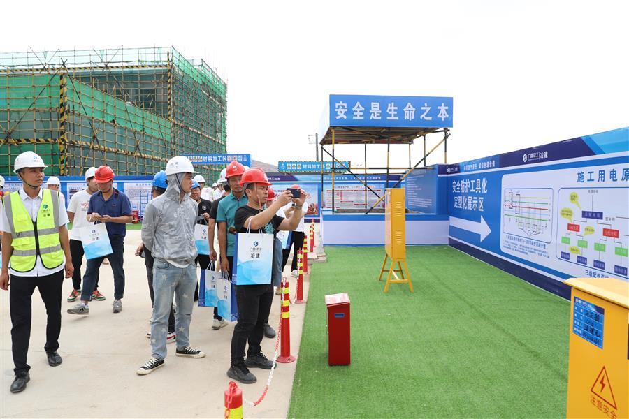 隨后,與會(huì)人員進(jìn)入項(xiàng)目實(shí)體進(jìn)行安全文明標(biāo)準(zhǔn)化生產(chǎn)現(xiàn)場(chǎng)觀摩,認(rèn)真聽(tīng)取講解員對(duì)安全文件宣貫長(zhǎng)廊、安全管理標(biāo)準(zhǔn)化展示區(qū)、安全防護(hù)工具化、定型化展示區(qū)、質(zhì)量樣板展示區(qū)等方面的介紹,并詳細(xì)了解項(xiàng)目建設(shè)的管理亮點(diǎn)和特色做法等。