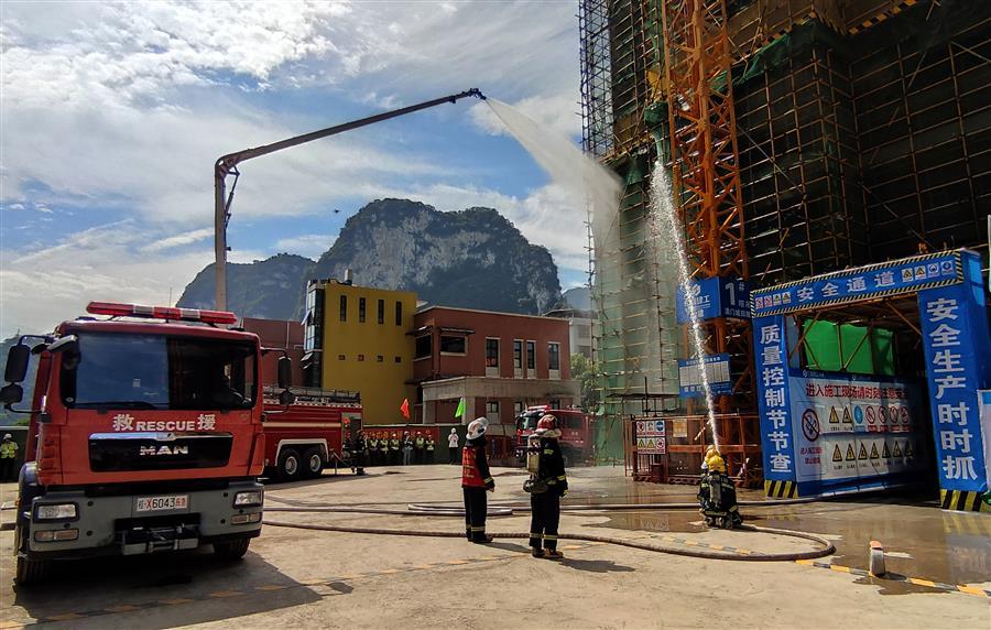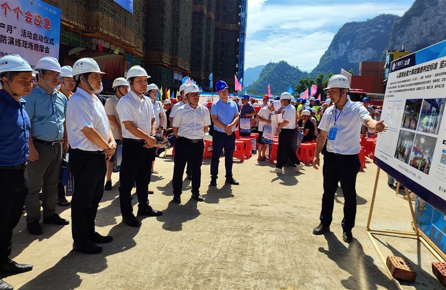 6月14日,河池市2023年“安全生產(chǎn)月”活動啟動儀式暨質(zhì)量安全標(biāo)準(zhǔn)化、消防演練現(xiàn)場觀摩會在冶建公司桂金分公司承建的河池?澳門國際城四期項目部舉辦。河池市住房和城鄉(xiāng)建設(shè)局黨組成員、副局長韋鵬致辭并宣布“安全生產(chǎn)月”活動啟動,冶建公司總經(jīng)理、黨委副書記蒙勝益參加并講話。觀摩會由河池市建設(shè)工程質(zhì)量安全監(jiān)督站副站長覃安納主持。