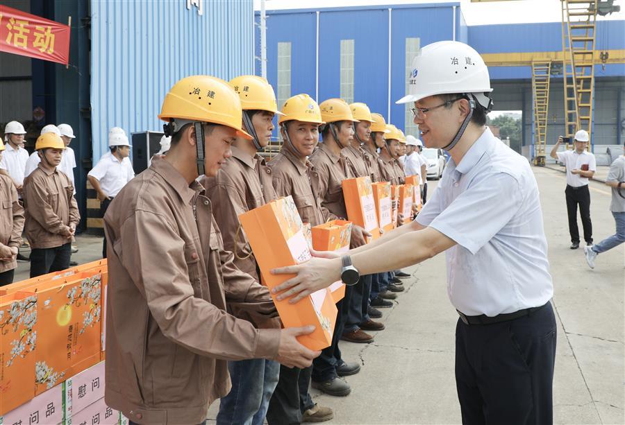 9月24日,自治區(qū)住房城鄉(xiāng)建設廳黨組成員、副廳長潘國雄帶隊到廣西建工集團冶金建設有限公司,開展“情系職工”中秋慰問活動。集團公司黨委副書記、工會主席陳家堅,柳州市住建局黨組書記陳剛,集團公司組織人事部副總經理向丹,冶建公司總經理、黨委副書記蒙勝益,冶建公司黨委副書記、紀委書記、工會主席賴海標參加。廣西建設工會副主任、二級調研員鄒麗萍參加并主持慰問活動。