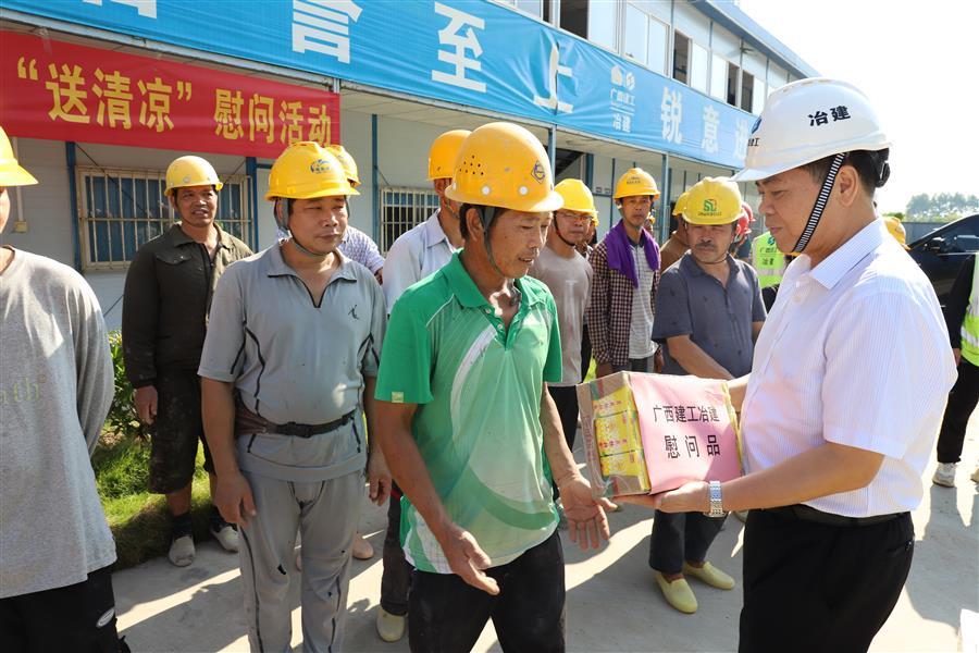 8月7日,冶建公司董事長、黨委書記覃振華,總經(jīng)理、黨委副書記蒙勝益分別到壓力容器制造廠、柳州市柳東新區(qū)明德小學(xué)項(xiàng)目開展“送清涼”慰問活動。
