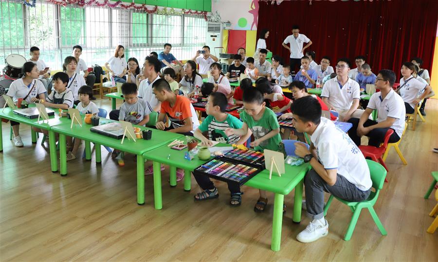 活動(dòng)當(dāng)天,參加活動(dòng)的青年志愿者在福利院工作人員的帶領(lǐng)下參觀了福利院的教室、寢室、廚房、餐廳以及舞蹈室等孩子們的生活、學(xué)習(xí)場(chǎng)所,詳細(xì)了解了孩子們的身體健康、學(xué)習(xí)生活等情況。隨后,青年志愿者們和福利院孩子們一起圍成“同心圓”,伴隨著歡快的音樂聲,青年志愿者們和孩子們一起玩起了“擊鼓傳球”、“你畫我猜”、“蒙眼過障礙物”等游戲。在游戲過程中,每一個(gè)孩子都融入到了互動(dòng)環(huán)節(jié)中,現(xiàn)場(chǎng)氣氛融洽。青年志愿者還與孩子們一起種植綠植,在老師的講解下,大家順利的完成了一件又一件的綠植作品。
