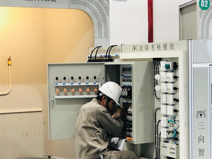公司選派兩名員工參加本次大賽的電工項目及電氣安裝項目比賽,比賽通過理論知識考試和現(xiàn)場實操考試形式進行,現(xiàn)場實操考試以機電設(shè)備事故處理的形式開展。比賽要求參賽選手在規(guī)定時間內(nèi)完成相同的任務(wù),速度快、操作準、質(zhì)量高者獲勝。