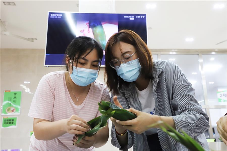 經(jīng)過(guò)簡(jiǎn)單的現(xiàn)場(chǎng)教學(xué)后,大家領(lǐng)取材料,分組配合,踴躍參與包粽子比賽,只見大家捋粽葉、放餡、封口、扎捆,動(dòng)作一氣呵成,不一會(huì)兒,一只只各式各樣的粽子就在大家手中成型。